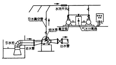 ![]() 圖1 給排水泵站系統(tǒng)中真空泵系統(tǒng)的組成 |