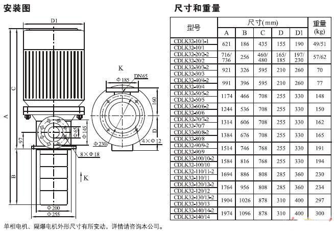 CDLK/CDLKF浸入式多級(jí)離心泵(安裝尺寸)