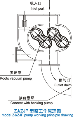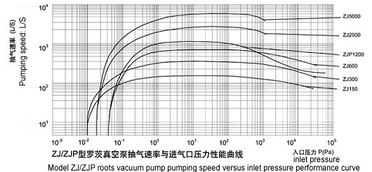 羅茨真空泵主要由一對同步高速旋轉(zhuǎn)的“8”字形轉(zhuǎn)子與兩個半圓形的泵腔組成。該泵不能單獨(dú)排氣,必須與前級泵(如滑閥泵、旋片泵、水環(huán)泵、油環(huán)泵等)串聯(lián)使用。在前級泵進(jìn)氣口前面串聯(lián)上羅茨真空泵組成機(jī)組可提高前級泵的真空度,在有效范圍內(nèi)可大大提高抽氣速率。羅茨真空泵的極限壓力由前級泵決定,表中數(shù)據(jù)為標(biāo)準(zhǔn)配置(配用雙級油封式機(jī)械真空泵)時的低極限壓力。羅茨泵廣泛使用于真空澆鑄、真空熔煉、真空脫氣、真空鍍膜行業(yè)及化工醫(yī)藥行業(yè)的真空蒸餾、真空干燥等。泵對小量灰塵不敏感。 本公司羅茨真空泵經(jīng)過10余年不斷改進(jìn),有以下優(yōu)點(diǎn): ●因轉(zhuǎn)子采用高精度專用數(shù)控機(jī)床加工,并作精細(xì)平衡校驗,具備良好的幾何對稱性,轉(zhuǎn)子嚙合間隙均勻。泵體、側(cè)蓋采用專用機(jī)床加工,精度高。因此本公司羅茨真空泵運(yùn)轉(zhuǎn)平穩(wěn)、噪聲低、振小、極限真空度高。 ●因泵的傳動部件采用可靠的消隙結(jié)構(gòu),故泵可高壓差下長期工作。 ●起動快,能在短時間內(nèi)達(dá)到極限真空。 ●因泵腔內(nèi)無互相滑動的零件,無需用油潤滑,避免了油蒸汽對系統(tǒng)的污染。 ●安全可靠,ZJP系列本身配帶溢流閥起自動保護(hù)作用。 ●結(jié)構(gòu)緊湊,占地面積小。左、右、下面三個排氣口可以任選一個,方便用戶安裝。