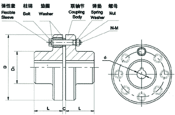 Summary Flexible Couplings Model FCLis widely used for its compact designing,easy installation,convenient maintenance,small size and light weight.As long as the relative displacement between shafts is kept within the specified tolerance,B couplings will operate the best function and have a longer working life.Thus it is greatly demanded in medium and minor power transmission systems driven by moters,such as speed reducers,hoists,compressos,conveyers,spinning and weaving machines and ball mills. TKPermittable relative displacement: Radial displacement:0.2~0.6mm Angle displacement:0°30′~1°30′ 外形尺寸參數 Size chart & Parameter 概 述 FCL型彈性套柱銷聯(lián)軸器的特點是結構簡單,安裝方便,更換容易,尺寸小,重量輕,因而得到廣泛使用,如若安裝調整后能保持兩軸相對位移量在規(guī)定的范圍內,則聯(lián)軸器會有滿意的使用性能和較長的工作壽命。因此能廣泛用于載荷不大,由電動機驅動的各種中、小功率傳動軸系中,如減速機、起重機、壓縮機、輸送機、紡織機、卷揚機、球磨機等。 彈性套柱銷聯(lián)軸器的許用相對位移: 徑向位移:0.2~0.6mm 角位移:0°30′~1°30′