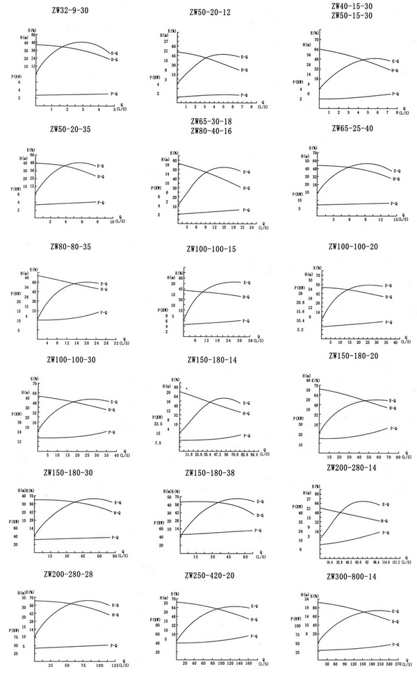 六、ZW型無堵塞污水自吸泵性能曲線圖