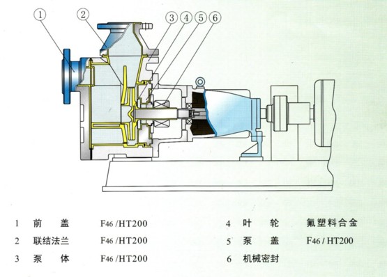 IHF襯氟離心泵按國家標準設(shè)計;泵體采用先進的生產(chǎn)工藝以金屬外殼緊襯氟塑料(F46)制造,泵的承重部分為金屬材料具有機械強度高、耐壓性強、抗機械沖擊力優(yōu)越等優(yōu)點;主要過流部件葉輪、泵蓋等均采用金屬嵌件外包氟塑料一次性高溫模壓而成;配置外裝式金屬波紋管機械密封,對磨材質(zhì):氧化鋁VS四氟、碳化硅VS四氟、硬質(zhì)合金VS硬質(zhì)合金,用戶可根據(jù)工況要求選擇對磨付。