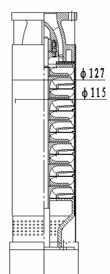 從資料看這一時期比較成熟的設計之一是模仿普通立式多級離心泵,采用正反導葉,葉輪采用優(yōu)秀水力模型,導葉設計采用等速度矩原理。另一種采用空間導葉,葉輪采用優(yōu)秀水力模型,考慮葉輪與空間導葉的相互作用,把兩者作為一個整體來設計。這些設計思想在當時的產(chǎn)品中得到很好得貫徹和體現(xiàn)。