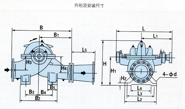 S,SH型單級中開離心泵外型及安裝尺寸