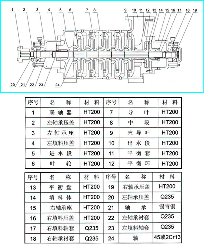 TSWA型臥式清水多級(jí)泵結(jié)構(gòu)圖