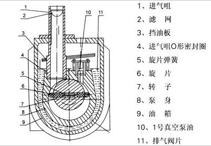 圖一:2XZ型旋片式真空泵的結構圖 |