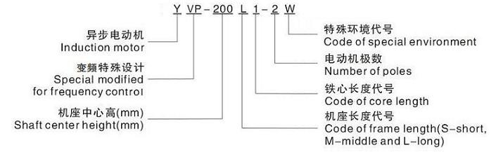 變頻離心泵所配YVP變頻調(diào)速電機(jī)結(jié)構(gòu)說明:
