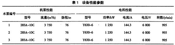 蘭州石化公司動力廠第三循環(huán)水場設計供水能力為7500m3/h。擔負著7套煉化裝置循環(huán)冷卻水的供應。流程是從煉化裝置返回的壓力回水經DN900線回到循環(huán)水場,沿冷卻塔DN800上水立管上塔,經過配水和淋水裝置。進行通風冷卻。冷卻后的水匯人塔下集水池。再通過聯(lián)通管流人冷水池。循環(huán)水泵房設置冷水泵三臺。冷水泵從冷水池吸取冷水后加壓外供,沿DN900管線雙路進入循環(huán)水管網(wǎng),供生產裝置冷卻使用。按照生產要求供水壓力一般保持在O.4一O.7MPa之間,但在實際運行中發(fā)現(xiàn),由于各煉化裝置開停工時間不一致。造成循環(huán)冷卻水供水壓力忽高忽低,用水量大時冷水泵效率較高,而在開工裝置少時,開兩臺工頻泵運行時壓力過高,出口閥門處于半開狀態(tài)時裝置能耗居高不下。導致冷水泵憋壓甚至引起機泵振動和發(fā)熱。使供水能耗升高同時容易使供水設備損壞。究其原因是三臺冷水泵性能相同、供水能力相等,見表1。在用水量小時沒有調節(jié)手段。在生產用水量不是很大的時候.開一臺冷水泵水壓偏低不能滿足生產要求。開兩臺冷水泵又造成“大馬拉小車”現(xiàn)象。因此為了適應煉化生產的變化,降低供水系統(tǒng)能耗,改變供水系統(tǒng)的被動局面,采用高壓變頻器根據(jù)水壓變化控制循環(huán)水泵轉速以達到經濟合理運行的目的。