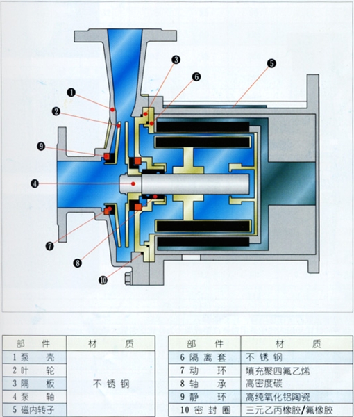 CQ磁力補(bǔ)液泵結(jié)構(gòu)圖與材料分析