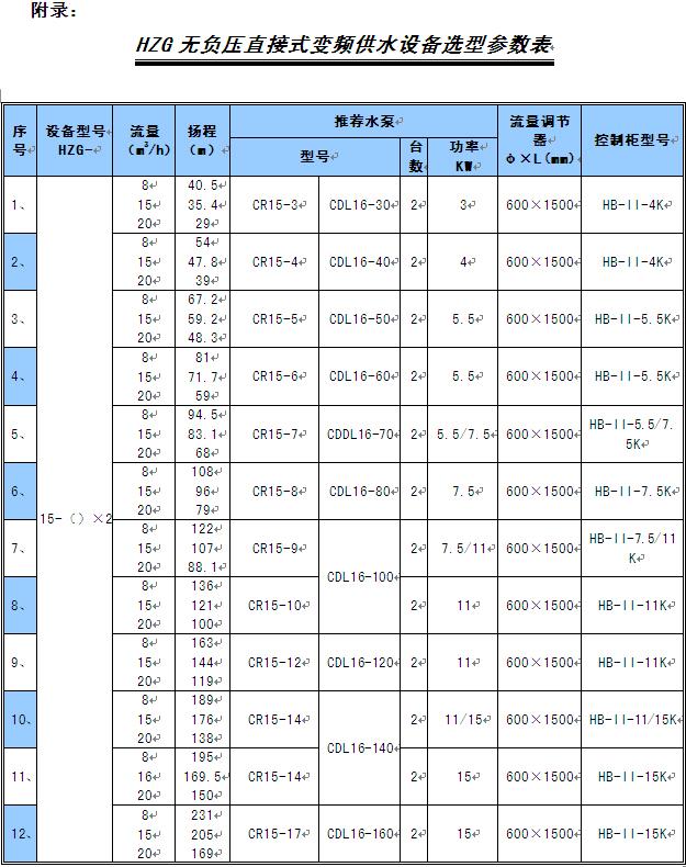 “HZG無負壓直接式變頻供水設(shè)備”主要指標(biāo)如下: