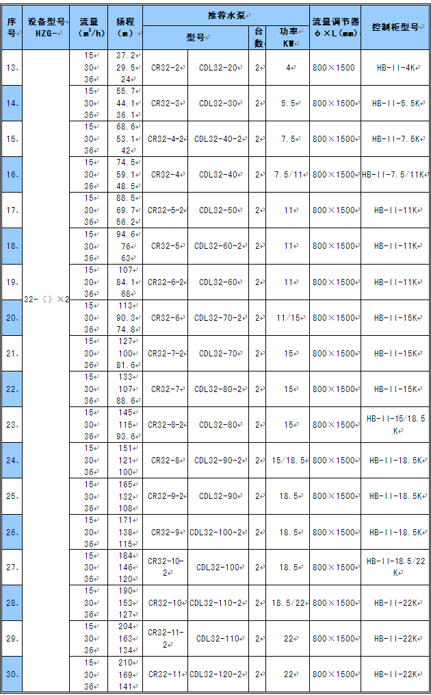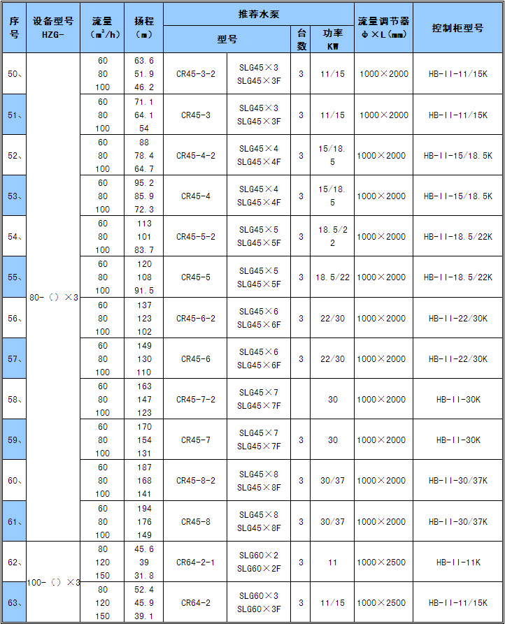 1) 表中的流量均按實際大用水量設(shè)計,設(shè)備型號為常用推薦型號,也可根據(jù)顧客實際情況和特殊要求另行設(shè)計。