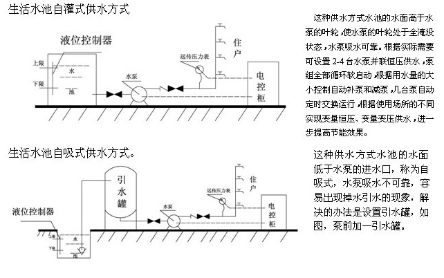 2、附加小泵或氣壓罐,為完全消除小流量或零流量供水電耗,可增加輔助小泵或輔助氣壓罐,當(dāng)供水壓力低時(shí),自動(dòng)停運(yùn)主泵,使小泵或氣壓罐運(yùn)行。