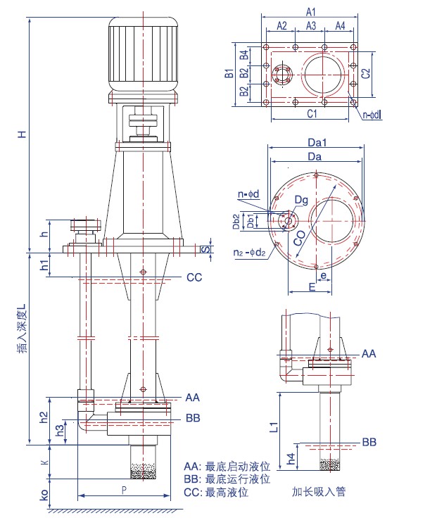 耐腐蝕耐磨損的工程塑料立式液下泵外形尺寸和安裝尺寸