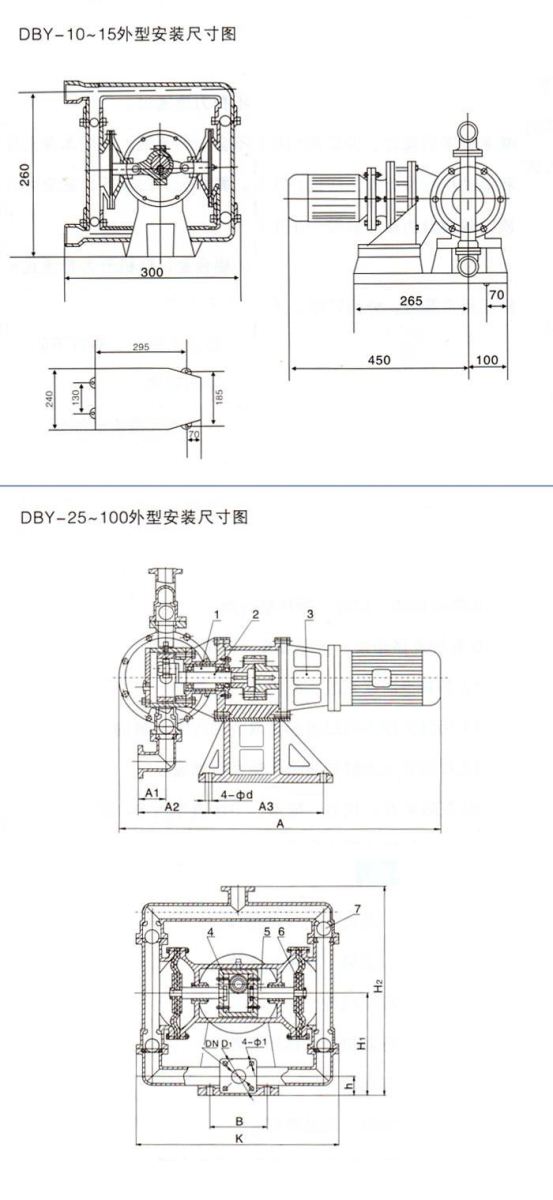 DBY-50-65-80-100擺線式流體部位內(nèi)襯氟防爆電動(dòng)隔膜泵外型尺寸圖