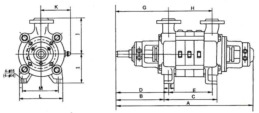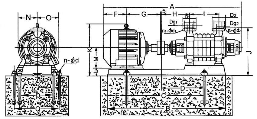 GC型臥式多級鍋爐給水泵安裝尺寸圖: