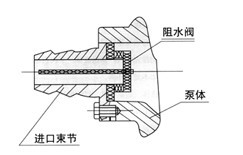 5.自吸泵的進口束節(jié)重裝時,請注意阻水閥應(yīng)向正面,以便與阻水閥正面貼合保證白吸效果(見右下圖)。
