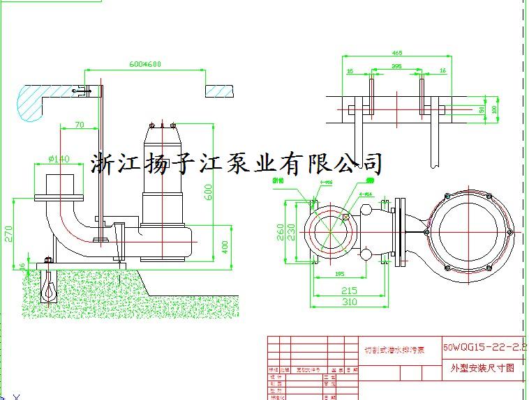 50WQ帶刀潛水排污泵帶耦合裝置CAD安裝尺寸圖