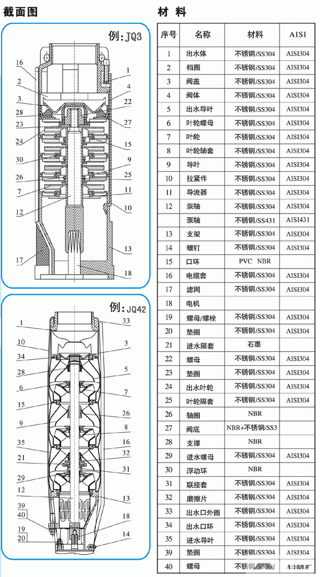 QJ系列不銹鋼304多級深井潛水泵結(jié)構(gòu)圖