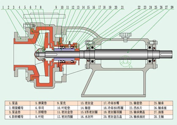 UHB-ZK型料漿泵,脫硫泵,砂漿泵,渣漿泵,壓濾泵密封結(jié)構(gòu)簡圖及泵體結(jié)構(gòu)圖