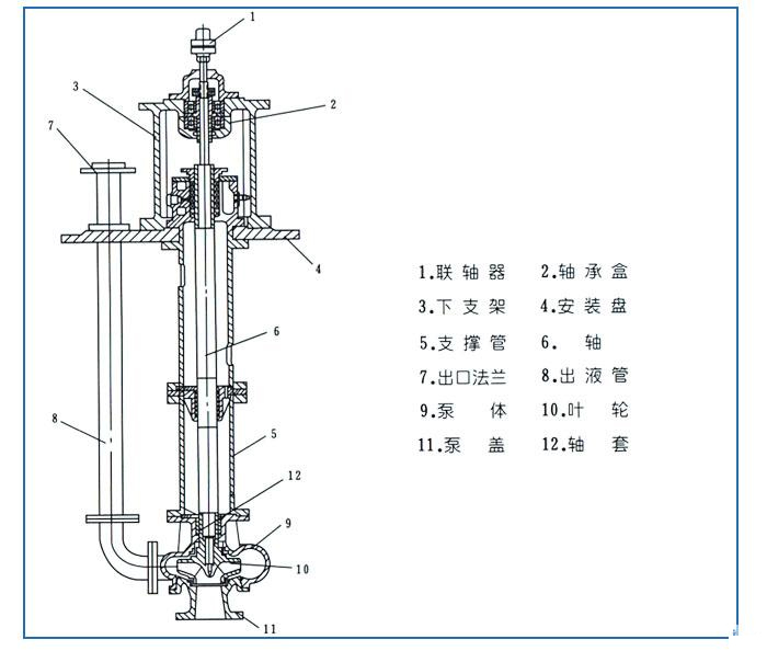 泵為立式液下泵,外形美觀,直接安裝在被輸送介質(zhì)的儲存器上,無額外占地面積,從而降低了基建投入。取消了機(jī)械密封,解決了其他液下泵因機(jī)械密封容易磨損而須經(jīng)常維修的煩惱,節(jié)約了泵的運行成本,提高了工作效率。采用了獨特的記心式雙平衡葉輪,供輸送了不含固體顆粒等清潔的介質(zhì),振動噪音特低,效率高;采用開式雙平衡葉輪,供輸送不清潔帶有固體顆粒及短纖維的液體,運行平穩(wěn)、不堵塞。