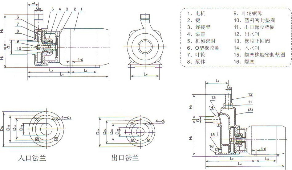 防爆直聯(lián)式半開式葉輪食品級不銹鋼自吸泵安裝尺寸結(jié)構(gòu)圖