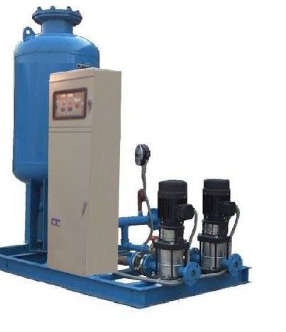 ⑵補(bǔ)水——當(dāng)循環(huán)系統(tǒng)發(fā)生泄漏時及向系統(tǒng)補(bǔ)水,泄漏一般分為少量泄漏和大量泄漏,當(dāng)少量泄漏時,設(shè)備自動選擇增壓泵從脫氣罐抽水補(bǔ)充,使系統(tǒng)壓力恒定;當(dāng)大量泄漏時,設(shè)備自動選擇從系統(tǒng)外(如自來水或軟水水箱)補(bǔ)水進(jìn)入脫氣罐,然后增壓泵從脫氣罐抽水補(bǔ)充,使系統(tǒng)壓力恒定。當(dāng)脫氣罐的貯水量少于設(shè)定值時,自動從系統(tǒng)外補(bǔ)給(如自來水或軟化水)。