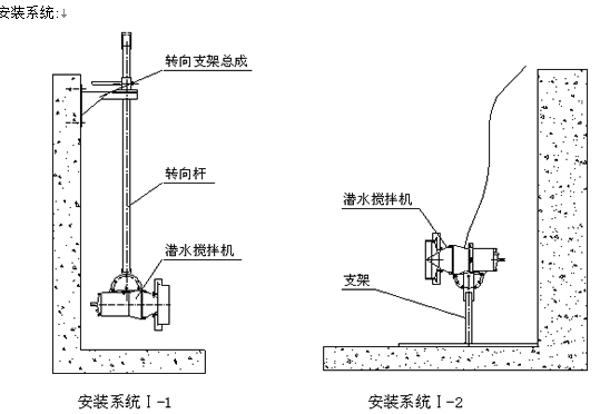 安裝系統(tǒng)Ⅰ只適用池深<4m,機(jī)型為QJB0.85/8-260/3-740C和QJB1.5/6-260/3-980C攪拌機(jī),其中Ⅰ-1可在水平方向和垂直方向進(jìn)行調(diào)節(jié);