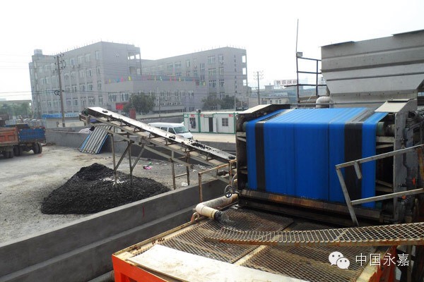 那么,管道內(nèi)的泥水混合物被送往何處呢?這些輸泥管沿著河道一直搭到了距離清淤船幾百米外的淤泥干化處理場(chǎng)。記者在這個(gè)占地3500平方米的處理場(chǎng)看到,這里的設(shè)備剛剛調(diào)試成功,通過管道輸送來的淤泥,經(jīng)過幾道工序處理后,已經(jīng)成功產(chǎn)出干泥。