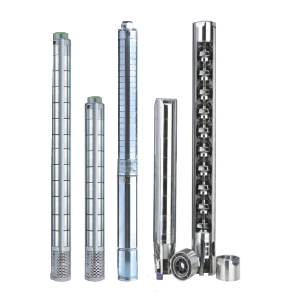 (2)潛水泵 潛水泵的電動機在各級泵殼的下面,這樣的結構形式使得它的直徑較小,長度較長,因此它適應在小直徑的泵井內,如圖2所示。工作時,電動機和部分或全部泵殼浸入水下。運行過程中噪聲較小。采用潛水泵的泵站(如圖2所示),主要優(yōu)勢在于前期投入成本較低。