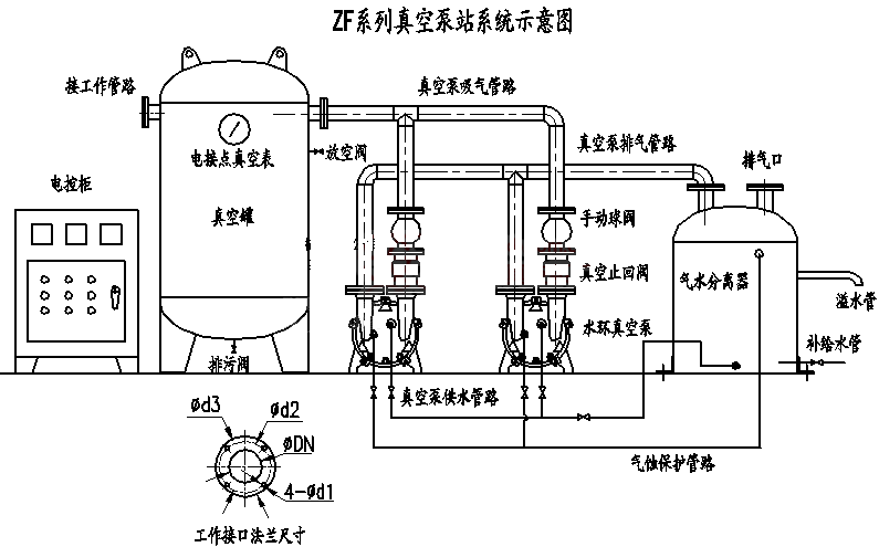2BV、2BE1設(shè)有汽蝕保護接口。在泵發(fā)生汽蝕現(xiàn)象時,從泵排氣側(cè)的汽蝕保護接口充入不凝氣體即可消除汽蝕噪聲,并大大減輕汽蝕對泵的損害。