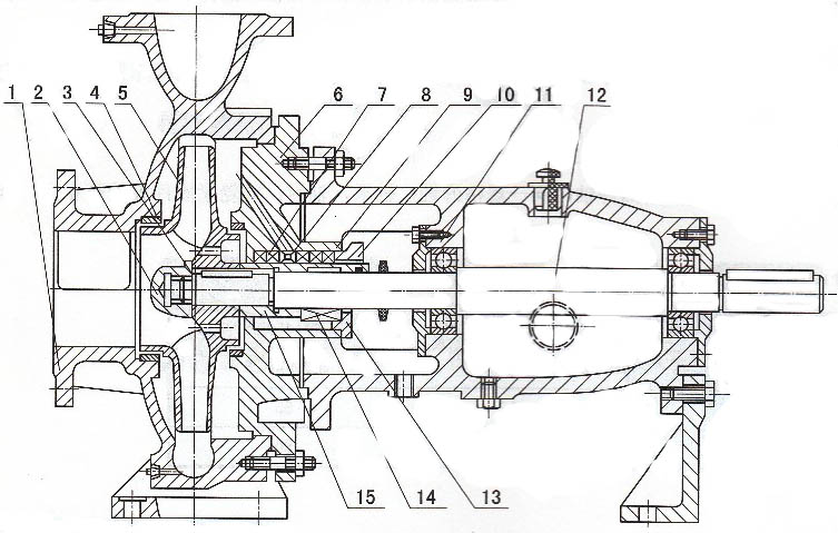 IH型化工泵有29個(gè)根本型,其中22個(gè)雙速(2900、1450r/min)經(jīng)過A、B兩種型式的葉輪直徑切開變型后,達(dá)112個(gè)規(guī)范。
