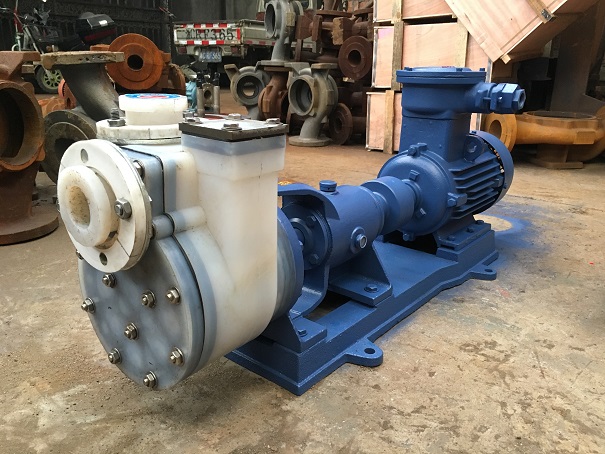 輸送氫氟酸介質(zhì)時建議選擇襯氟材質(zhì)的耐酸泵,像襯氟磁力泵,襯氟離心泵,襯氟管道泵,襯氟自吸泵全氟自吸泵,FSB氟塑料塑合金離心泵以及全氟液下泵等,當(dāng)然,具體選用哪種型號的耐酸泵還得根據(jù)具體的工況情況以及客戶的安裝使用要求。由于氫氟酸會跟碳化硅起化學(xué)反應(yīng),而目前氟塑料泵內(nèi)的部分部件都用的是碳化硅,如靜環(huán)\軸套等。因此選擇氫氟酸泵時,應(yīng)將相應(yīng)的將碳化硅部件替換成耐氫氟酸的材質(zhì),比如四氟材質(zhì)的密封圈、合金材質(zhì)的機(jī)封等。