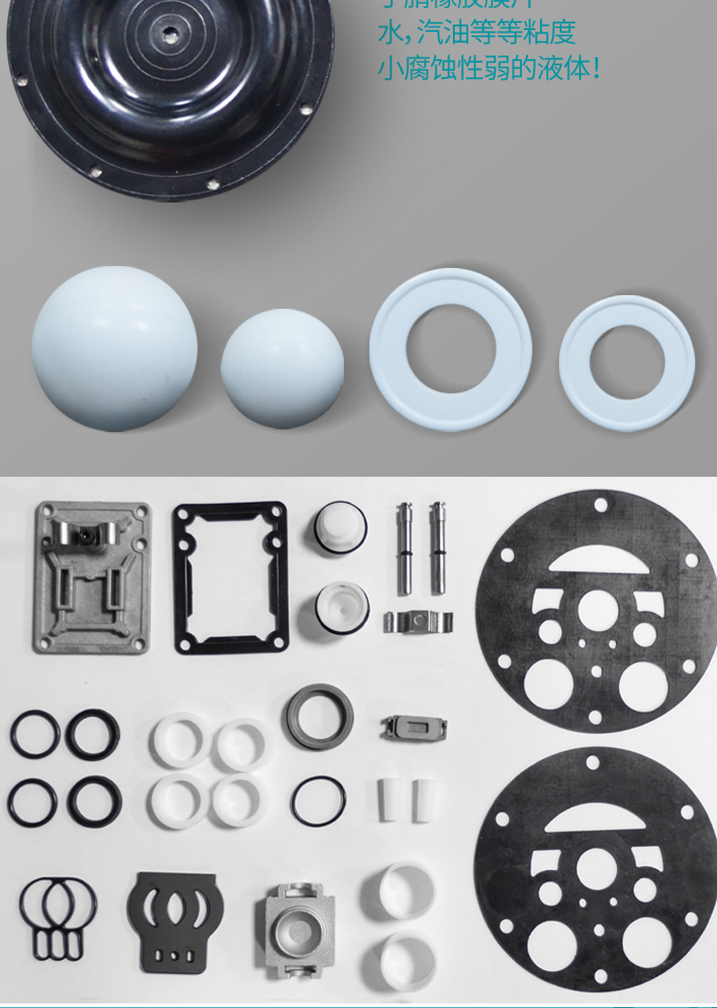 丁青橡膠、三道橡膠:耐磨損,耐輕微腐蝕,價(jià)格便宜。(鑄鐵隔膜泵,鋁合金隔膜泵標(biāo)準(zhǔn)配置)