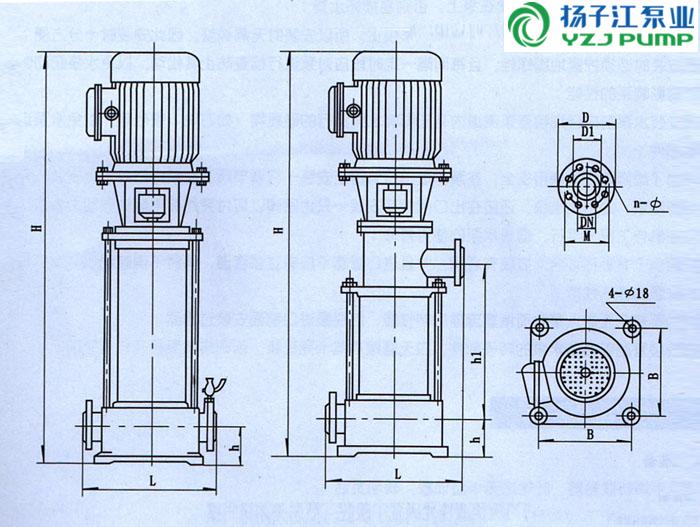 GDL型立式多級管道離心泵安裝尺寸圖: