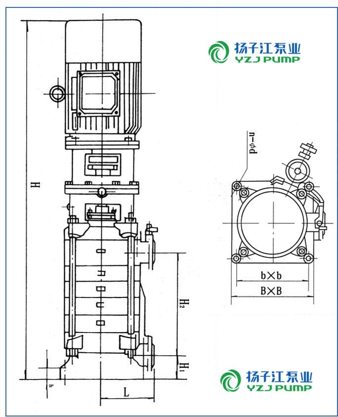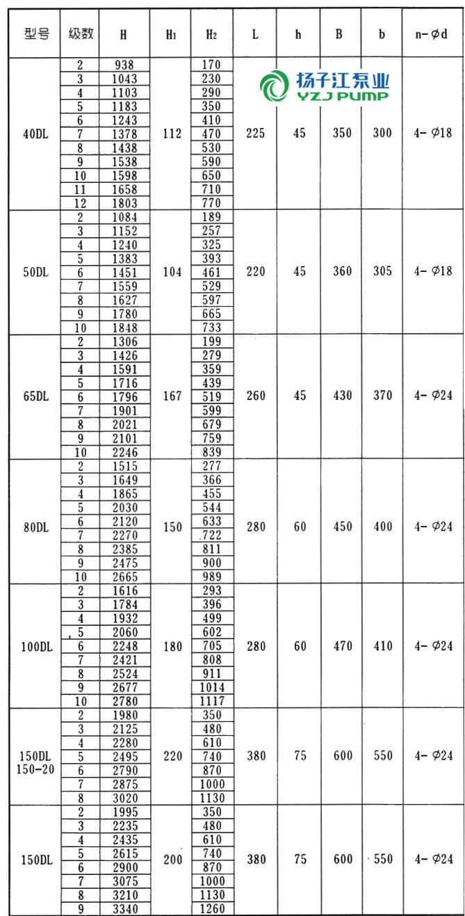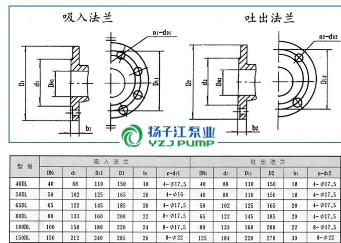 DL系列立式多級離心泵法蘭安裝尺寸: