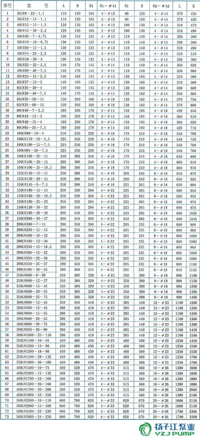 GW型管道式無堵塞排污泵(安裝尺寸)