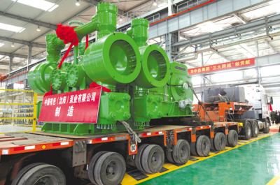 為中國五礦集團(tuán)安徽礦業(yè)公司生產(chǎn)的首臺(tái)SGMB350/4隔膜泵啟運(yùn)。