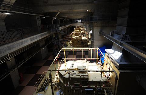 圖為“首都圈外圍排水路”系統(tǒng)排水機房內(nèi)4臺使用飛機引擎的大功率抽水泵。