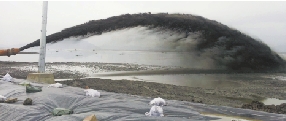 首先,泥漿通過管道被“吹”到填海區(qū) (張妍婷 攝)