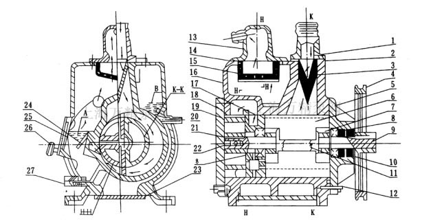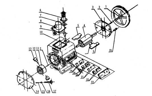 2、裝配前應(yīng)清洗干凈并烘干,按圖4進(jìn)行裝配,先裝高真空端,將彈簧轉(zhuǎn)片托起裝入高轉(zhuǎn)子內(nèi),然后放進(jìn)高真空室,裝上前端板,再裝定位銷釘,均勻擰緊螺釘,裝配后應(yīng)保證轉(zhuǎn)動(dòng)靈活輕松 ,均勻一致。然后再裝低真空轉(zhuǎn)子及后端蓋,低轉(zhuǎn)片的槽應(yīng)向后端板一邊。再裝排氣門,排氣閥片應(yīng)貼緊閥板坐,再裝其它零件。