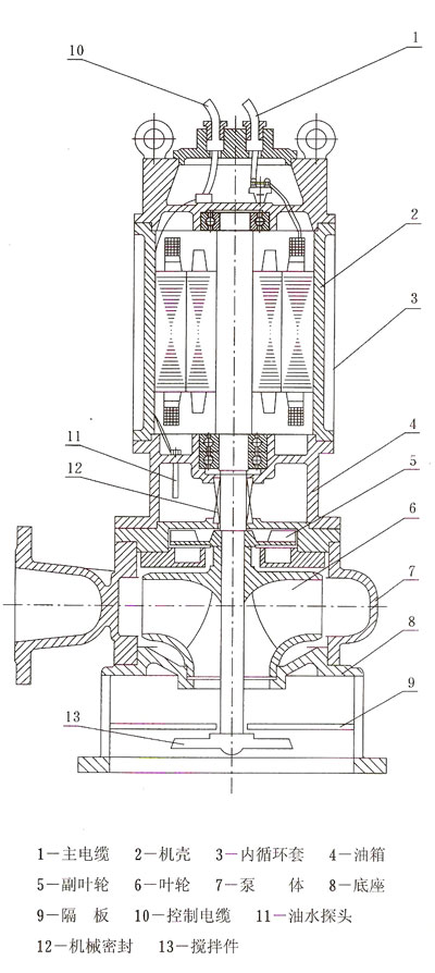 JYWQ型系列自動攪勻排污泵結構示意圖及說明