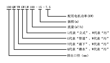三、WQK/QG型系列切割潛水排污泵型號意義