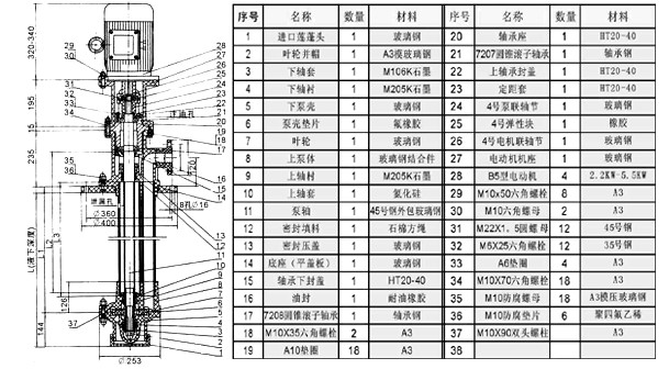 3. 液下離心泵為立式結構,工作時泵體浸在液體中,因而很容易起動,不存在排氣抽空問題,同時具有無泄漏等特點,液下深度可達0.5~7米。