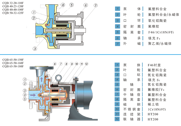 CQB型磁力泵是化工流程中杜絕跑、冒、滴、漏現(xiàn)象,消除環(huán)境污染,創(chuàng)造“無泄漏車間”、“無泄漏工廠”,實現(xiàn)安全、文明生產(chǎn)的理想用泵。
