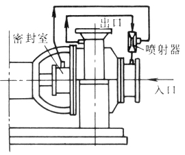 在泵的出口處引出流體高速通過噴射器,將密封腔內(nèi)泄漏的流體吸入泵的入口處,達(dá)到密封的目的,但需設(shè)停泵密封裝置