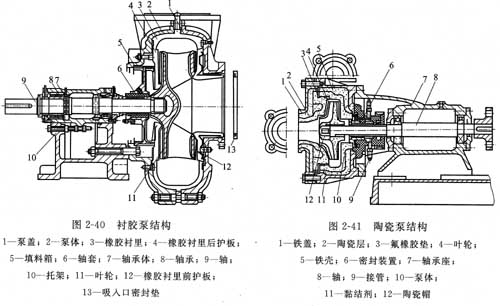 陶瓷泵結(jié)構(gòu)如圖2—41所示。陶瓷泵主要過流零件用材見表2—12,近年,已采用氧化鋯陶瓷制造泵的關(guān)鍵零部件,如磁力驅(qū)動(dòng)陶瓷泵的隔離套等。
