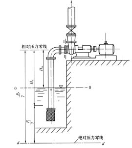 泵房內(nèi)的地坪標(biāo)高取決于泵的安裝高度,正確地計算泵的大允許安裝高度,使泵站既能安全供水,又能節(jié)省土建造價,具有很重要的意義。由式