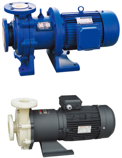 CQB-F型氟塑料磁力泵的過流部件均采用“聚偏二氟塑料合金(PVF2)和超高分子量聚乙烯(UHMWPE)”制造。在常溫下,PVF2對(duì)鹵素、鹵代烴、強(qiáng)氧化劑、沸酸、堿等多種有機(jī)溶劑都有良好耐蝕性;UHMWPE對(duì)非氧化性酸(稀硫酸、硝酸及濃度較大的鹽酸、磷酸、氫氟酸、甲酸、乙酸)、氨和胺及各種堿、鹽溶液都有良好的耐蝕性,兩種材料都不耐強(qiáng)氧化性酸的腐蝕。氟合金泵的外殼為金屬材料,有足夠的強(qiáng)度承受管道以及外界的機(jī)械沖擊。傳動(dòng)功率3kW以下的采用全氟結(jié)構(gòu)。
