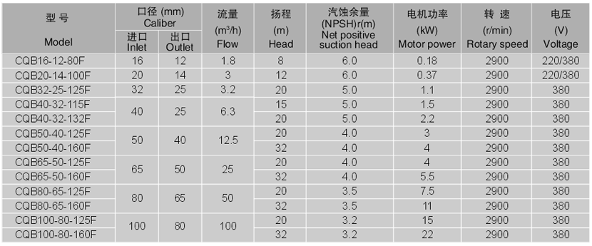 ■ 氟塑料磁力泵性能參數(shù)