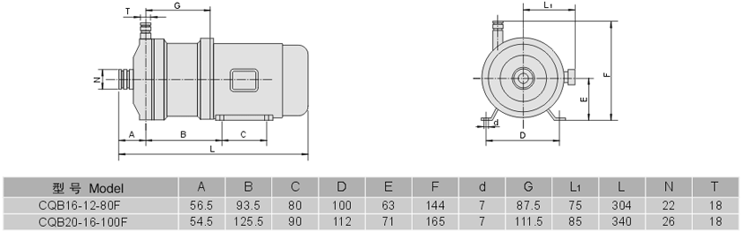 氟塑料磁力泵安裝尺寸圖